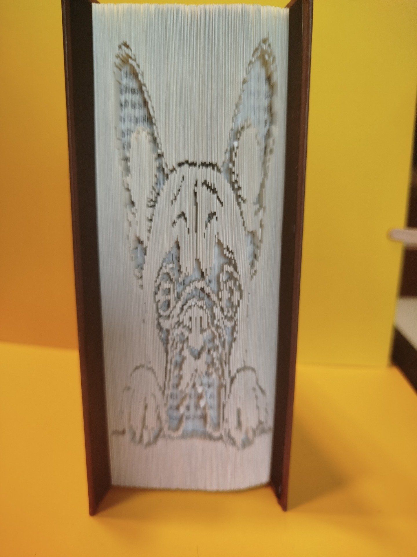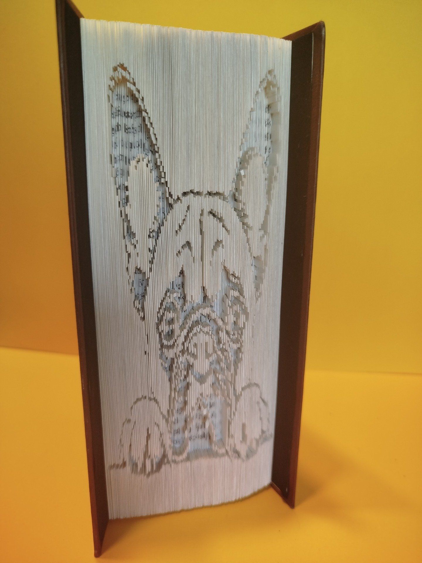 Parfait pour les amoureux des chiens, cette œuvre de papier transforme un simple livre en une véritable sculpture décorative,