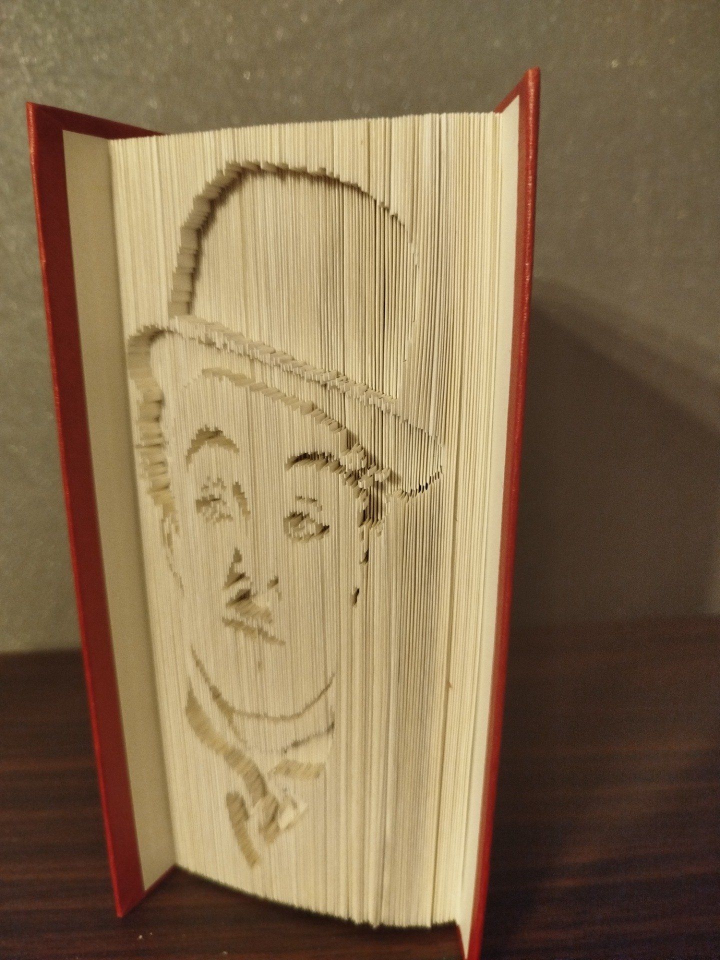 grâce à la technique du bookfolding chaque page à été soigneusement coupée et pliée pour faire apparaitre son portrait en relief