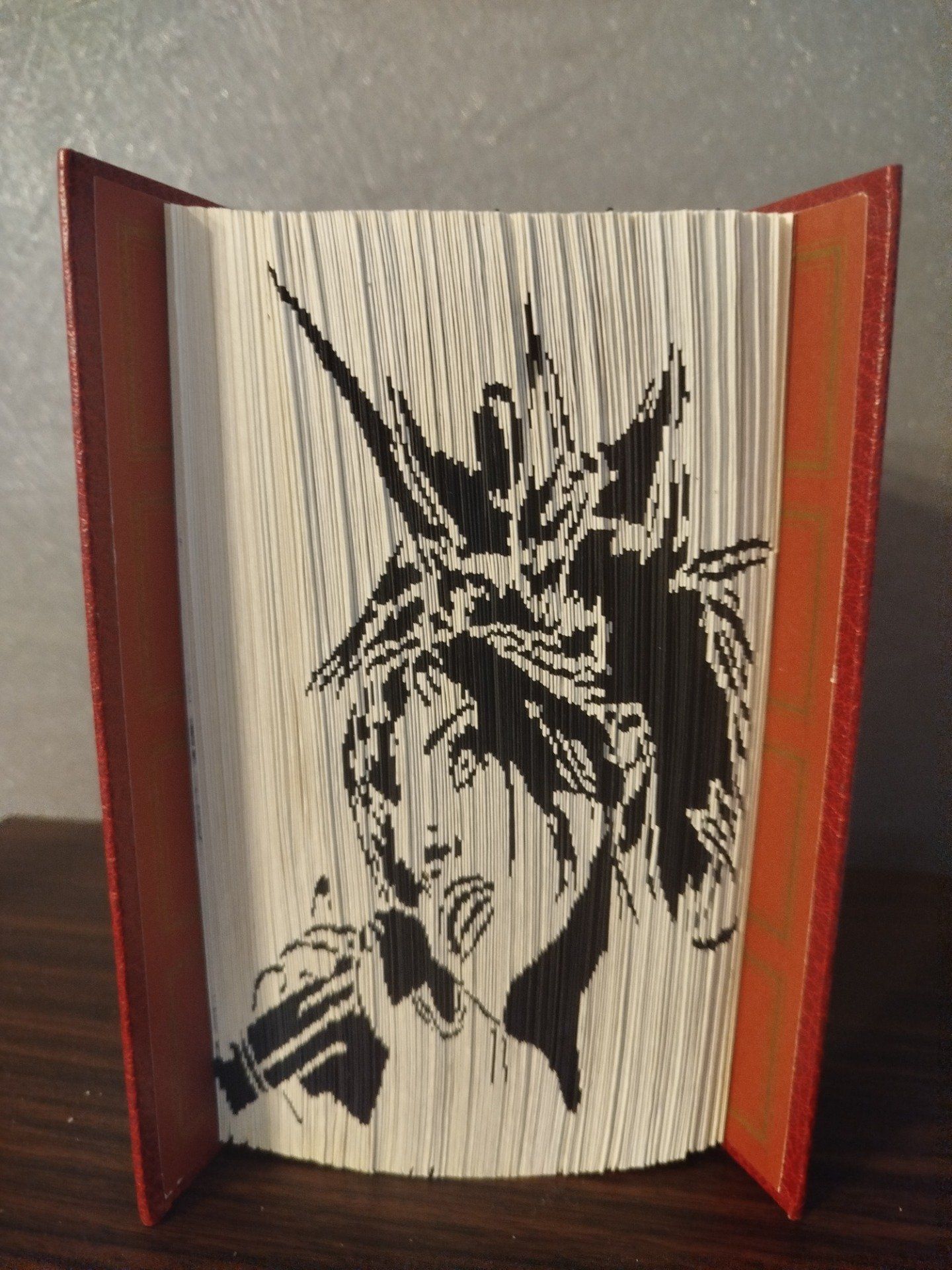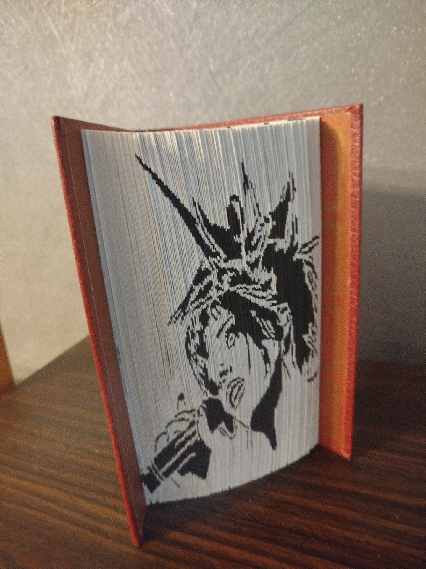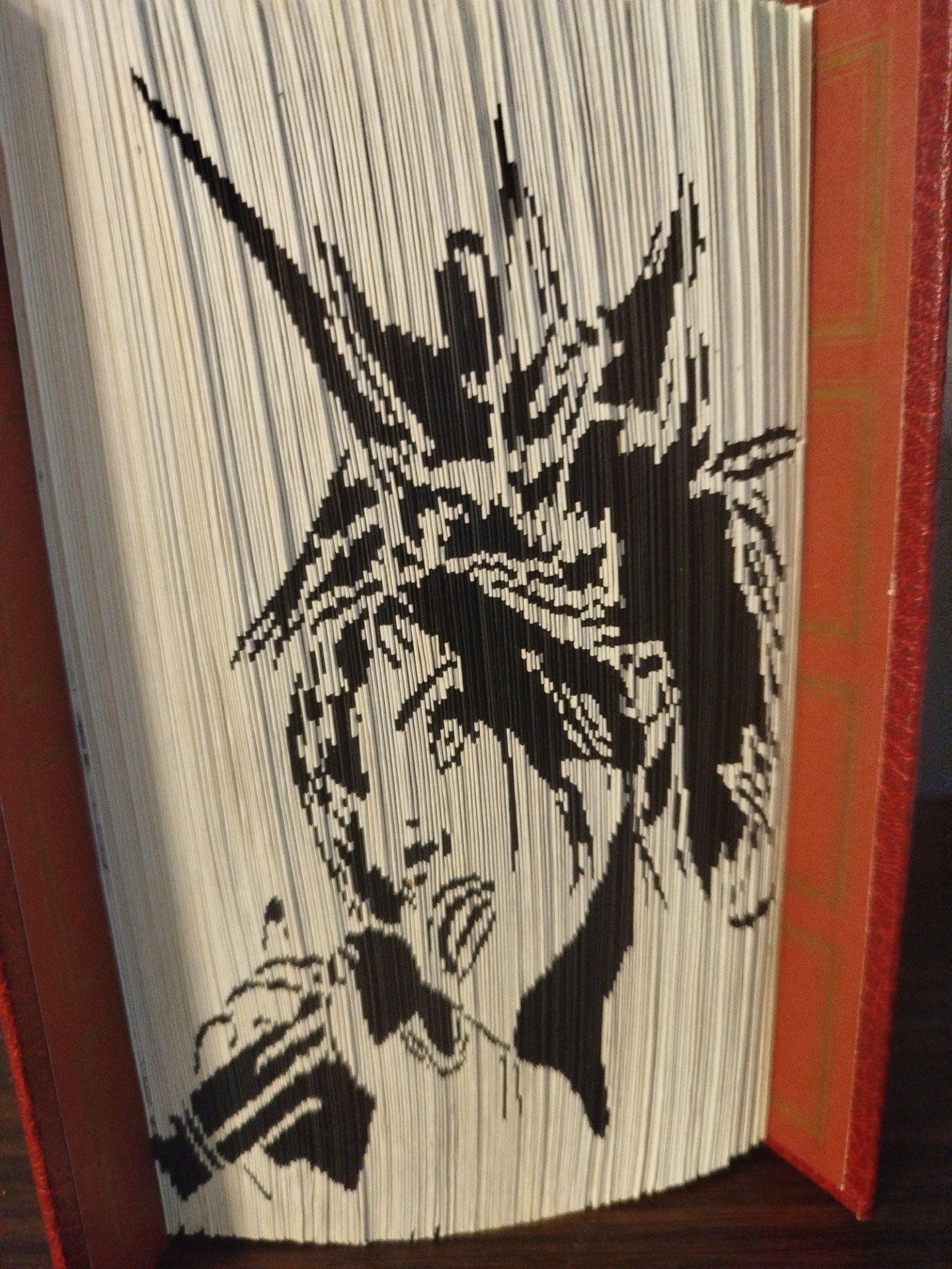 livre minutieusement découpé selon un motif précis dans la tranche du livre